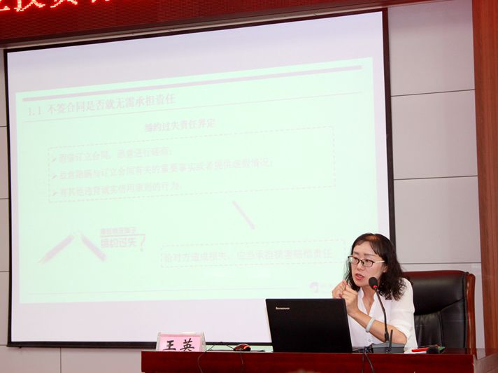 講座由陜西標(biāo)典律師事務(wù)所合伙人王英女士主講,以“合同法律實(shí)務(wù)相關(guān)知識(shí)”為主要內(nèi)容,為機(jī)關(guān)全體人員、二級(jí)單位科級(jí)以上人員進(jìn)行了培訓(xùn)。培訓(xùn)主要分為合同談判階段注意事項(xiàng)、合同簽訂階段注意事項(xiàng)、合同簽訂常見(jiàn)問(wèn)題匯總、合同履行階段注意事項(xiàng)四部分。