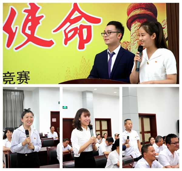 “中國(guó)共產(chǎn)黨的初心和使命是什么?”——請(qǐng)回答 請(qǐng)7號(hào)臺(tái)1號(hào)選手回答要嚴(yán)格黨員教育管理監(jiān)督,落實(shí)好”三會(huì)一課”等制度,使每名黨員都成為一面什么?——“鮮紅的旗幟。” 3號(hào)臺(tái)回答正確,加10分, ——這是8月2日,由公司黨委主辦的“不忘初心、牢記使命”主題教育知識(shí)競(jìng)賽,為大家?guī)?lái)一場(chǎng)別開(kāi)生面的智慧較量和腦力比拼。 正式比賽開(kāi)始前,公司黨委書(shū)記、董事長(zhǎng)高曉兵同志講話(huà)。開(kāi)展“不忘初心、牢記使命”主題教育是以習(xí)近平同志為核心的黨中央統(tǒng)攬偉大斗爭(zhēng)、偉大工程、偉大事業(yè)、偉大夢(mèng)想作出的重大部署。在新中國(guó)成立70周年這個(gè)重要節(jié)點(diǎn),在決勝全面建成小康社會(huì)的關(guān)鍵之年,黨中央部署開(kāi)展“不忘初心、牢記使命”主題教育,具有重大現(xiàn)實(shí)意義和深遠(yuǎn)歷史意義。競(jìng)賽活動(dòng)的隆重舉辦,是對(duì)我們“強(qiáng)黨建、嚴(yán)紀(jì)律、促發(fā)展”專(zhuān)項(xiàng)整治工作的一次檢驗(yàn),是對(duì)公司“不忘初心、牢記使命”主題教育的一次檢閱,是對(duì)我們開(kāi)展的“每日一學(xué)”、周周考活動(dòng)的一次延伸,更是一次加強(qiáng)學(xué)習(xí)、提升理解、理論武裝的一次好機(jī)會(huì)。我們要始終不渝地把堅(jiān)持學(xué)習(xí)習(xí)近平新時(shí)代中國(guó)特色社會(huì)主義思想學(xué)深悟透,入心入腦,指導(dǎo)實(shí)踐,促進(jìn)工作。當(dāng)前,我們從基建期向生產(chǎn)經(jīng)營(yíng)期轉(zhuǎn)型,能不能轉(zhuǎn)好,能不能在今年實(shí)現(xiàn)鋁電煤一體化的循環(huán)經(jīng)濟(jì),需要我們解放思想,共同付出百倍努力,勇往直前。俗話(huà)說(shuō),邁開(kāi)腳步,再長(zhǎng)的的路都不在話(huà)下;停滯不前,再短的路也難以到達(dá)。在守初心、踐初心,擔(dān)使命、勇?lián)?dāng),實(shí)現(xiàn)美鑫公司高質(zhì)量發(fā)展的道路上,只要大家心往一處想,勁往一處使,同步發(fā)力,同頻共振,我們就沒(méi)有過(guò)不去的火焰山,沒(méi)有過(guò)不去的艱難困苦,一定會(huì)實(shí)現(xiàn)美鑫公司的發(fā)展目標(biāo)。 比賽正式開(kāi)始。來(lái)自八支代表隊(duì)的24名選手,精神飽滿(mǎn),快速準(zhǔn)確回答,贏來(lái)觀(guān)眾陣陣掌聲。 臺(tái)下觀(guān)眾也不甘示弱,積極踴躍地舉手答題,條理清晰,回答正確。 經(jīng)過(guò)“個(gè)人必答題”“、“小組必答題”、“搶答題”和“對(duì)戰(zhàn)題”4個(gè)環(huán)節(jié)的激烈競(jìng)爭(zhēng),礦業(yè)公司代表隊(duì)比分一路領(lǐng)先,勇奪桂冠。 鋁鎂合金代表隊(duì)榮獲第二名 機(jī)關(guān)一支部代表隊(duì)榮獲第三名 陽(yáng)極分公司、錦陽(yáng)電廠(chǎng)、機(jī)關(guān)第二黨支部、第三黨支部、銅川鋁業(yè)留守處代表隊(duì)榮獲團(tuán)隊(duì)優(yōu)秀獎(jiǎng) 參賽選手楊曉慧說(shuō),通過(guò)參加這次黨建知識(shí)競(jìng)賽,進(jìn)一步豐富了黨建知識(shí),增強(qiáng)了黨性意識(shí)。觀(guān)眾王博博說(shuō),通過(guò)觀(guān)看知識(shí)競(jìng)賽,讓我進(jìn)一步認(rèn)識(shí)到加強(qiáng)黨員黨性修養(yǎng)的重要性和必要性,將以一個(gè)優(yōu)秀共產(chǎn)黨員的標(biāo)準(zhǔn)嚴(yán)格要求自己、規(guī)范自己、指引自己。大家一致認(rèn)為,通過(guò)競(jìng)賽的方式,以賽促學(xué)、以賽促用,充分調(diào)動(dòng)了全體黨員干部參與學(xué)習(xí)教育的積極性、主動(dòng)性和自覺(jué)性,營(yíng)造了比學(xué)趕超、奮勇?tīng)?zhēng)先的良好氛圍,進(jìn)一步引導(dǎo)全體黨員加強(qiáng)理論學(xué)習(xí),提升黨性修養(yǎng),堅(jiān)定理想信念,為推動(dòng)公司目標(biāo)任務(wù)的全面完成奠定了堅(jiān)實(shí)的思想基礎(chǔ)。 參賽選手合影留念