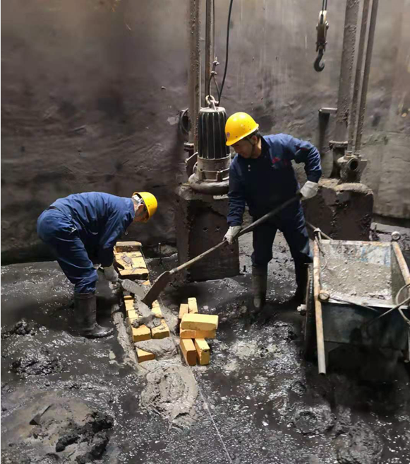 |     陽(yáng)極分公司現(xiàn)有的污水處理系統(tǒng)缺少初期污泥沉淀池,雜質(zhì)形成的大量污泥隨潛污泵進(jìn)入污水處理系統(tǒng),不僅影響設(shè)備的水處理能力,或造成設(shè)備損壞,甚至出水水質(zhì)不能達(dá)到環(huán)保標(biāo)準(zhǔn)。為此,陽(yáng)極分公司動(dòng)力車(chē)間召開(kāi)了調(diào)節(jié)池技術(shù)改造專題研究會(huì)議,制定方案,實(shí)施改造。 10月初,污水調(diào)節(jié)池改造工程在空壓污水班班長(zhǎng)任延峰的帶領(lǐng)下,王文慶、岳剛、何祥等同志實(shí)施改造。他們利用僅有的手推車(chē),不畏艱難,將磚和水泥吊運(yùn)到8米多深的水池。池下光線差,空氣封閉,潮濕,排水期間又逢連陰雨,又為改造工程增添了難度和強(qiáng)度,他們?nèi)淌苡倌嗌l(fā)的臭味和濕冷潮氣的侵襲,一磚一磚嚴(yán)密壘砌,拉緊線,對(duì)平縫,保證墻體平直通順。近一個(gè)月的時(shí)間,硬是在池底筑起了一道高1米,長(zhǎng)30米的淤泥圍擋墻。調(diào)節(jié)池具備了沉淀功能,達(dá)到環(huán)保綠色生產(chǎn)要求及節(jié)能循環(huán)再利用的效果,被職工們稱為“效率”墻。 污水“效率”墻的砌筑,為陽(yáng)極分公司污水處理環(huán)保達(dá)標(biāo)、系統(tǒng)安全高效運(yùn)行提供了技術(shù)保障。  |
