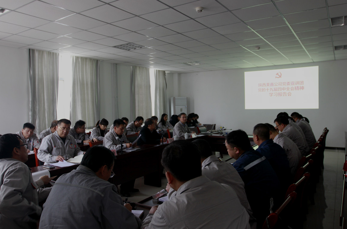 黨的十九屆四中全會勝利召開后,公司黨委第一時間利用中心組學習傳達學習全會精神。根據(jù)集團公司宣貫全會精神的部署安排,公司積極研究貫徹落實,推動全公司上下迅速掀起宣傳貫徹全會精神的熱潮。11月26日下午,公司黨委書記、董事長高曉兵深入公司最大單位--鋁鎂合金分公司,向基層黨員干部群眾宣講黨的十九屆四中全會精神。分公司領導班子成員,各黨支部書記、委員,各部門負責人和機關、車間部分黨員代表參加。     高曉兵強調,“為什么說中國特色社會主義制度具有明顯的制度優(yōu)勢?是因為中國特色社會主義制度能夠最大程度促進我國社會生產(chǎn)力的發(fā)展,使廣大人民群眾充分享受到發(fā)展成果。全會研究堅持和完善中國特色社會主義制度,推進國家治理體系和治理能力現(xiàn)代化問題并作出決定,對決勝全面堅持小康社會、全面建設社會主義現(xiàn)代化國家,對鞏固黨的執(zhí)政地位、確保黨和國家的長治久安,具有重大而深遠的意義”。在宣講結束后,高曉兵要求,學習宣傳十九屆四中全會精神是當前和今后一個時期的重要政治任務,對基層黨組織來講,就是要在不折不扣執(zhí)行全會決定的前提下,充分領會全會精神實質,結合工作實際不斷探索完善工作機制,創(chuàng)新工作體制、工作理念,在基建轉生產(chǎn)、銅川鋁業(yè)公司和鋁鎂合金分公司管理體系相融合的過程中,大家同心協(xié)力,奮力進取,用全會精神指導我們工作實踐,不斷為公司高質量高效益發(fā)展做出自己的貢獻。各級黨組織要提高政治站位、增強政治自覺,按照公司的安排部署,把學習貫徹全會精神與學習貫徹習近平新時代中國特色社會主義思想結合起來,與深入開展“不忘初心、牢記使命”主題教育結合起來,與集團公司學習貫徹全會精神部署安排結合起來,進一步學習好,領會好、貫徹好、落實好全會精神。 公司黨委高度重視十九屆四中精神的學習宣傳貫徹工作,11月5日下發(fā)《關于認真學習貫徹黨的十九屆四中全會精神的通知》文件,11月25日成立公司十九屆四中全會精神宣講團,列出20個課題,提出6項宣貫具體措施,扎實開展宣講活動,力爭將十九屆四中全會精神宣貫工作開展的有聲有色。  |