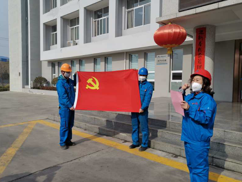 “我宣誓,守初心、擔(dān)使命,堅(jiān)決打贏疫情防控阻擊戰(zhàn)!”2月8日下午,在錦陽(yáng)電廠辦公樓前,全廠黨員干部面對(duì)著黨旗莊嚴(yán)宣誓,喊出這振奮人心的錚錚誓言,用行動(dòng)鑄成一道道鋼鐵防線。     當(dāng)前,正值全國(guó)上下抗擊疫情的特殊時(shí)期,錦陽(yáng)電廠黨支部充分發(fā)揮戰(zhàn)斗堡壘作用,在疫情防控的關(guān)鍵時(shí)期開(kāi)展主題黨日活動(dòng),確保廣大黨員干部教育不松懈、不掉隊(duì),做到支部做后盾、黨員做先鋒,嚴(yán)防死守、攻堅(jiān)克難,堅(jiān)決打贏疫情阻擊戰(zhàn)。     主題黨日活動(dòng)中,黨支部書(shū)記孫陽(yáng)首先作了動(dòng)員講話,他指出,當(dāng)前疫情防控工作依然十分復(fù)雜嚴(yán)峻,全廠黨員干部都應(yīng)該高度重視,履職盡責(zé),作出表率,做好疫情防控工作。他要求,一要繼續(xù)開(kāi)展疫情防控工作,領(lǐng)導(dǎo)班子和領(lǐng)導(dǎo)干部特別是主要負(fù)責(zé)同志要堅(jiān)守崗位,做到守土有責(zé)、守土擔(dān)責(zé)、守土盡責(zé)。二要黨員干部要擔(dān)當(dāng)盡責(zé)、堅(jiān)守崗位、做好表率、扎實(shí)工作,緊緊依靠全廠干部職工打贏疫情防控阻擊戰(zhàn)。三要嚴(yán)格按照規(guī)范要求,注意防范各種風(fēng)險(xiǎn),做好個(gè)人安全防護(hù)工作。     隨后,副經(jīng)理劉銀玲帶領(lǐng)全體黨員干部重溫入黨誓詞,讓每一名黨員深深感受到黨組織的強(qiáng)大凝聚力和號(hào)召力,明確責(zé)任與擔(dān)當(dāng),初心和使命。同時(shí)設(shè)立生產(chǎn)二門黨員“監(jiān)督崗”,監(jiān)督進(jìn)入生產(chǎn)區(qū)員工按要求規(guī)范佩戴口罩,排查員工身體異常情況,全力做好電廠疫情防控。 通過(guò)開(kāi)展“主題黨日”活動(dòng),進(jìn)一步地發(fā)揮了黨組織戰(zhàn)斗堡壘作用,展現(xiàn)了黨員干部的先鋒模范作用,讓黨員干部主動(dòng)亮身份,作表率、當(dāng)先鋒、把好關(guān),筑牢基層黨組織作為抵御疫情的第一道防線,堅(jiān)決打贏疫情防控阻擊戰(zhàn)。