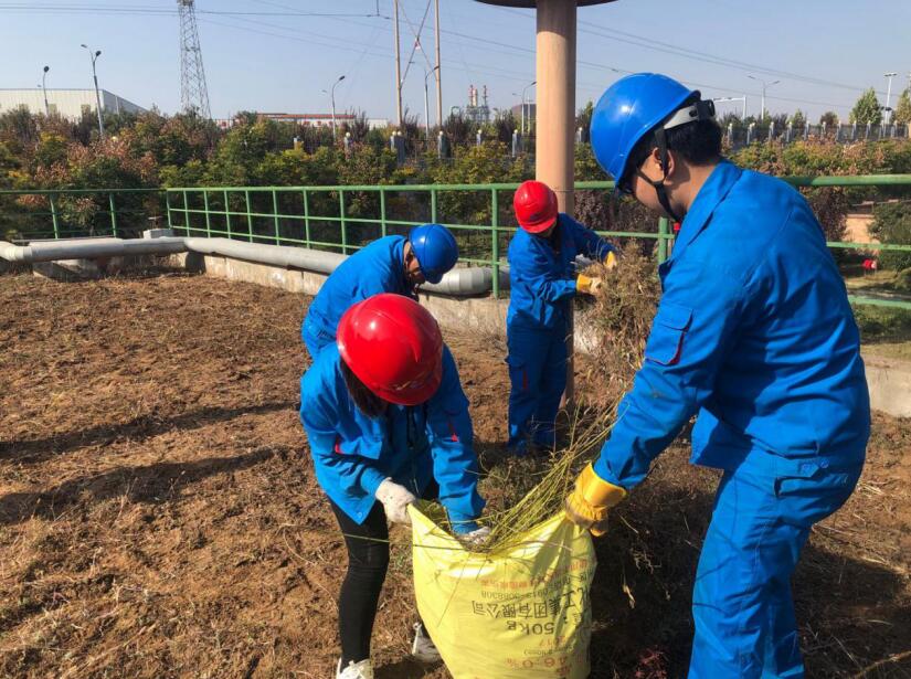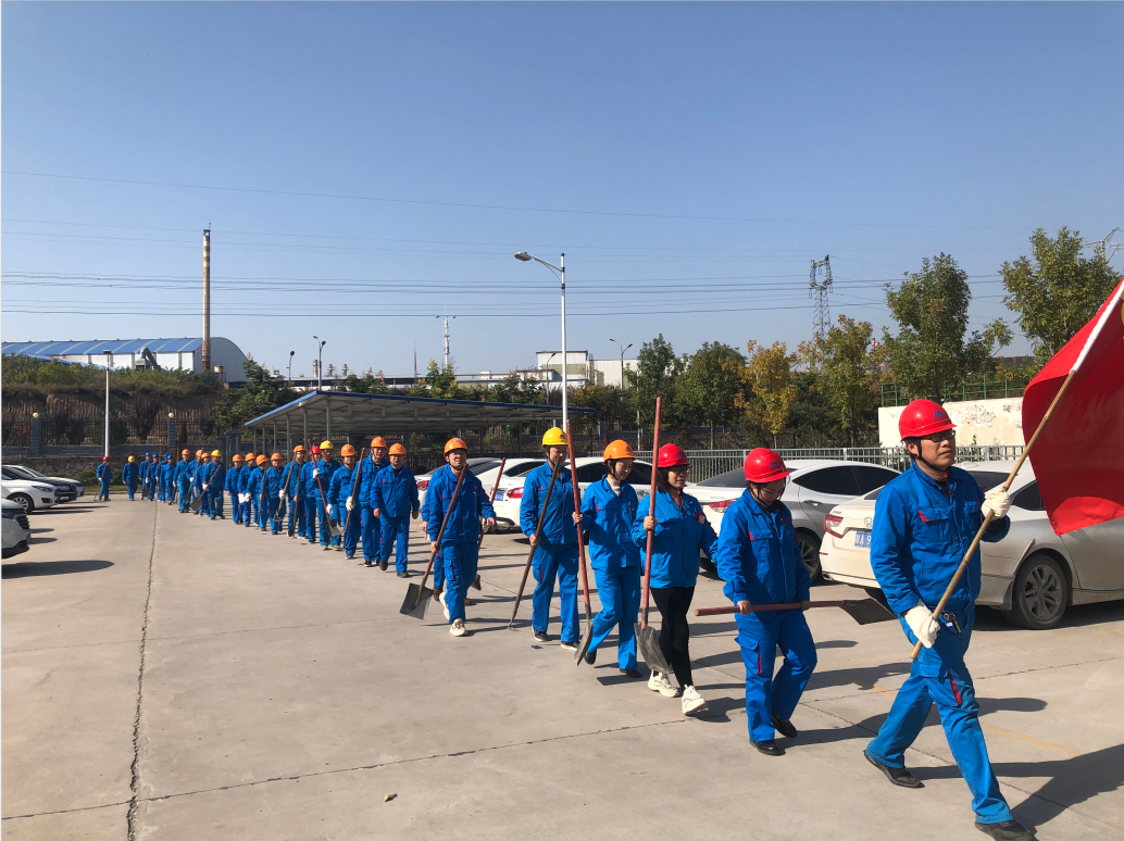今年以來,由于雨水天氣較多,位于廠區(qū)內(nèi)工業(yè)消防廢水池頂部雜草眾生,不僅影響廠區(qū)美化環(huán)境,還會(huì)引發(fā)火災(zāi)等安全隱患。為有效發(fā)揮黨員的先鋒模范作用,10月23日下午,錦陽電廠黨總支開展“清雜草、助文明”主題黨日活動(dòng),組織電廠黨員干部、積極分子及團(tuán)員共計(jì)37人,對(duì)工業(yè)消防水池頂部雜草進(jìn)行清理。 活動(dòng)開始前,電廠黨總支副書記劉銀玲就此次主題黨日活動(dòng)開展提出要求。她指出,此次主題黨日活動(dòng)是不僅僅是錦陽電廠精神文明單位創(chuàng)建工作的需要,也是美化廠區(qū)環(huán)境、提升形象,消除安全隱患,豐富主題黨日活動(dòng)的內(nèi)容與載體。希望各黨員用自己的實(shí)際行動(dòng)發(fā)揮好共產(chǎn)黨員的先鋒模范作用和黨組織的戰(zhàn)斗堡壘作用,為電廠各項(xiàng)事業(yè)順利推進(jìn)貢獻(xiàn)自己的力量。 隨后,大家排成縱隊(duì),整齊劃一,拿著工具,前往勞動(dòng)地點(diǎn)。 大家以小組為單位分片包干,有的揮鐵鍬,有的掄鐮刀,有的拔草,有的對(duì)雜草進(jìn)行裝袋整理......有條不紊、干勁十足、團(tuán)結(jié)協(xié)作,每個(gè)人的臉上都露出了滿足的笑容。 經(jīng)過近一個(gè)小時(shí)的辛勤勞動(dòng),工業(yè)消防水池頂部雜草被清除干凈,廠區(qū)面貌煥然一新。  |