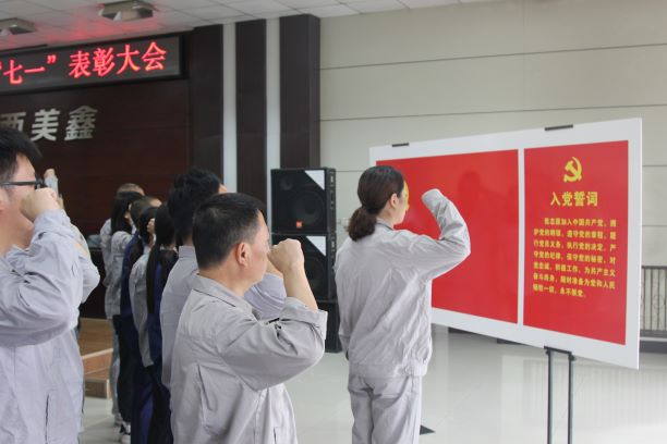 優(yōu)秀共產(chǎn)黨員代表表態(tài)發(fā)言 高曉兵作總結(jié)講話,他首先代表公司黨委,向受表彰的先進集體和先進個人及納新黨員表示熱烈的祝賀。他指出,在慶祝建黨100周年之際,在公司立足新發(fā)展階段、貫徹新發(fā)展理念、全面推進改革轉(zhuǎn)型、攻堅發(fā)展的關(guān)鍵時期,公司召開慶祝中國共產(chǎn)黨成立100周年暨“七一”表彰大會,對于進一步加強黨的建設(shè),更好地發(fā)揮各級黨組織的政治核心作用、黨支部戰(zhàn)斗堡壘作用和共產(chǎn)黨員的先鋒模范作用,促進全公司改革發(fā)展,確保今年各項目標任務(wù)的實現(xiàn),都具有十分重要的意義。 圍繞會議主題,結(jié)合公司生產(chǎn)經(jīng)營實際,他強調(diào):一是要帶頭抓好生產(chǎn)經(jīng)營工作,確保今年目標任務(wù)的實現(xiàn)。要求各級黨組織和黨員干部要認真總結(jié)經(jīng)驗教訓(xùn),科學(xué)研判發(fā)展形勢,努力激發(fā)干事創(chuàng)業(yè)激情、增強公司發(fā)展動力,切實推動公司高質(zhì)量、高效益發(fā)展;二是要帶頭抓好安全生產(chǎn),促進公司安全狀況穩(wěn)定向好。要求先進黨組織、優(yōu)秀黨員和黨務(wù)工作者要本著對企業(yè)、對職工生命財產(chǎn)高度負責的態(tài)度,進一步提高對安全工作重要性的認識,帶領(lǐng)廣大職工共同搞好安全生產(chǎn);三是要帶頭抓好廉政建設(shè),努力維護公司和諧穩(wěn)定。希望每個黨員,特別是黨員領(lǐng)導(dǎo)干部,都要向今天受表彰的同志學(xué)習(xí),按照政治堅定、公道正派、廉潔勤政的要求,刻苦學(xué)習(xí)理論,加強黨性修養(yǎng),增強黨性觀念。 |