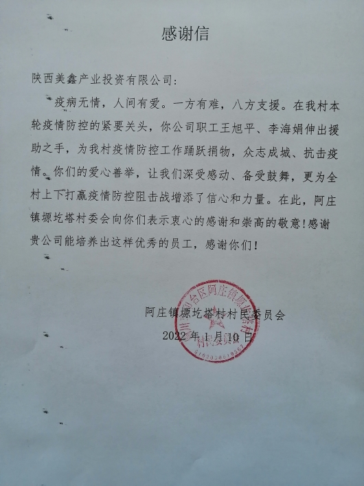疫病無情,人間有愛。在本輪疫情防控的緊要時刻,身為黨員的陽極組裝車間王旭平和同在公司質(zhì)檢中心工作的妻子李海娟,及時伸出援助之手,用實(shí)際行動支持疫情防控工作,為印臺區(qū)阿莊鎮(zhèn)塬圪塔村委會疫情防控工作檢查站踴躍捐物,他們的愛心善舉,讓身邊的職工備受鼓舞,樹立了良好的企業(yè)形象,更為當(dāng)前團(tuán)結(jié)一心打贏疫情防控工作增添了信心和力量。