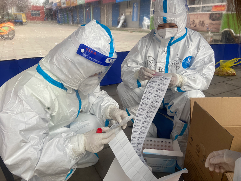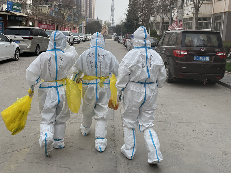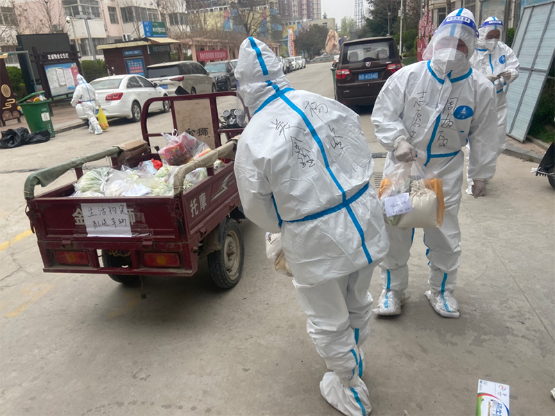 在幫扶隊(duì)選拔人員時(shí),楊峰主動(dòng)要求加入抗疫隊(duì)伍,投入到一線的抗疫工作中去。作為代表公司參與抗疫工作的女職工,她服從安排、聽(tīng)從指揮,也將美鑫人吃苦耐勞、求真務(wù)實(shí)的工作作風(fēng)融入到幫扶工作之中。配合采集核酸的醫(yī)護(hù)人員進(jìn)入居民樓,挨家挨戶幫醫(yī)護(hù)人員采集核酸樣本。一天下來(lái)密不透風(fēng)的防護(hù)服下的衣服早已被汗水浸濕,但是她卻從未有過(guò)抱怨。隊(duì)員杜莉在了解到有許多老年人有購(gòu)買(mǎi)蔬菜和藥品的需求,但由于不會(huì)使用手機(jī)操作十分焦急的情況后,便主動(dòng)請(qǐng)纓要求上門(mén)服務(wù),在完成手頭任務(wù)的情況下,一趟趟從菜店藥店購(gòu)買(mǎi)蔬菜和藥品,及時(shí)給有需要的老人送上門(mén),并貼心的叮囑老人如何按說(shuō)明書(shū)服用藥品,將巾幗之光展現(xiàn)在抗疫一線。