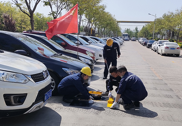 陽極分公司原有車位經(jīng)過長(zhǎng)期雨水沖刷和車輛碾壓,多數(shù)車位線已模糊不清,車輛騎線壓線停放現(xiàn)象時(shí)有發(fā)生,給職工停車造成很大困擾,也存在安全隱患。為消除隱患,加強(qiáng)分公司車輛安全管理,4月20日,陽極分公司團(tuán)總支積極組織團(tuán)員青年開展“車位畫線防隱患,規(guī)范停車你我有責(zé)”主題團(tuán)日活動(dòng)。此次車位畫線以節(jié)約人力物力為原則,在原車位底線基礎(chǔ)上進(jìn)行補(bǔ)充加深,同時(shí),考慮到畫線過程中模具由于反復(fù)使用,油漆會(huì)沿著模具邊沿流入底部,影響畫線效果,團(tuán)總支提前準(zhǔn)備了兩套T型、L型橡膠模具交替使用,確保工作質(zhì)量和進(jìn)度。一大早,團(tuán)員青年們就提著油漆,帶著工具來到指定地點(diǎn),四人為一組,一人清掃,一人刷漆,兩人搬移模具,大家很快就畫完了計(jì)劃區(qū)域內(nèi)車位線,并在車輛入口拉上警戒線,待油漆干后便立即投入使用。分公司停車場(chǎng)現(xiàn)有車位222個(gè),目前,部分車位已畫線完畢,分公司團(tuán)總支后期將根據(jù)天氣情況,及時(shí)組織團(tuán)員青年對(duì)剩余車位線進(jìn)行補(bǔ)畫,為分公司廠區(qū)車輛安全管理貢獻(xiàn)團(tuán)青力量。 |