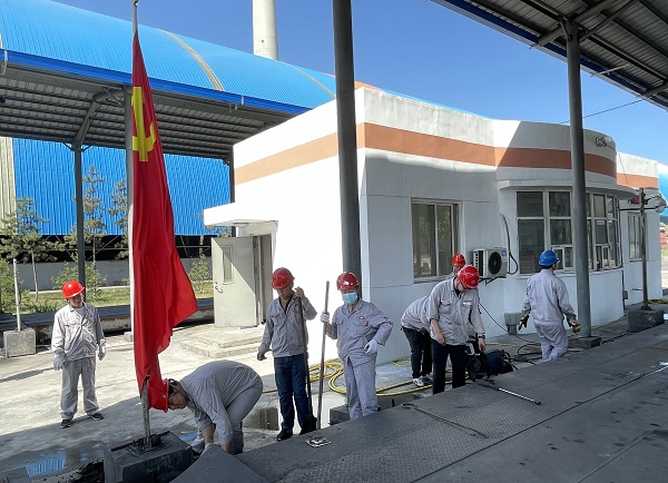 高溫“烤”驗入黨初心,酷暑“汗”衛(wèi)精確計量。時值盛夏,質檢計量中心黨支部立足生產實際,組織開展“清理磅秤”主題黨日活動,中心黨員參加了此次活動。 此次活動主要集中于錦陽電廠,活動中,大家分工明確,不怕臟累,用千斤頂將磅秤頂起,取出傳感器,分區(qū)域清理底部堆積而成的煤泥,對于沉積厚實無法破除的煤泥,俯下身去用高壓水槍進行沖洗后再用鐵锨將其鏟除后,再次進行沖洗,如此反復,短短1小時內,磅秤便煥然一新。清理結束后,技術人員將磅秤傳感器歸位,落下磅秤并進行角差校驗,確保重新投入運行后計量精確。 通過本次活動,切實提高了磅秤計量的精準度,充分激發(fā)了廣大黨員職工的責任意識和服務意識,使黨員職工在勞動中進一步錘煉了黨性。在今后的工作中,中心黨支部會持續(xù)開展此類活動,讓黨旗在生產一線持續(xù)飄揚。  |