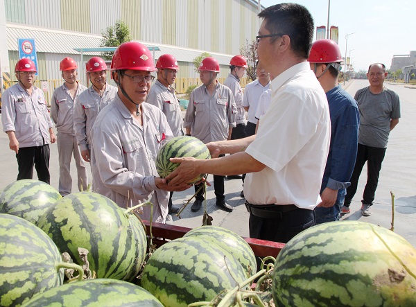 | 炎炎夏日,酷暑難耐。近日來(lái),持續(xù)的高溫天氣考驗(yàn)著堅(jiān)守在生產(chǎn)一線(xiàn)的職工,7月1日上午,公司黨委副書(shū)記李書(shū)平,公司工會(huì)主席包廣平、副主席池遠(yuǎn)宏及公司女工委主任馬海聆一行前往基層一線(xiàn)開(kāi)展“送清涼”活動(dòng),將公司的關(guān)懷及時(shí)送到職工的身邊。 為持續(xù)推進(jìn)“我為群眾辦實(shí)事”實(shí)踐活動(dòng)走深走實(shí),統(tǒng)籌做好夏季安全生產(chǎn)、疫情防控和防暑降溫工作,確保職工身心健康,公司工會(huì)采購(gòu)了14000余斤西瓜,為鋁鎂合金分公司、陽(yáng)極分公司高溫車(chē)間的一線(xiàn)職工及奮戰(zhàn)在錦陽(yáng)電廠重點(diǎn)項(xiàng)目的職工們送去親切問(wèn)候。在“送清涼”活動(dòng)現(xiàn)場(chǎng),職工們抱著一個(gè)個(gè)圓滾滾、綠油油的大西瓜,臉上樂(lè)開(kāi)了花。 據(jù)悉,公司工會(huì)將持續(xù)深入開(kāi)展“送清涼”活動(dòng),真心實(shí)意為職工群眾辦好事、辦實(shí)事、解難事,著力提升廣大職工獲得感、幸福感、歸屬感,為譜寫(xiě)公司高質(zhì)量發(fā)展新篇章做出更大的貢獻(xiàn)。 |