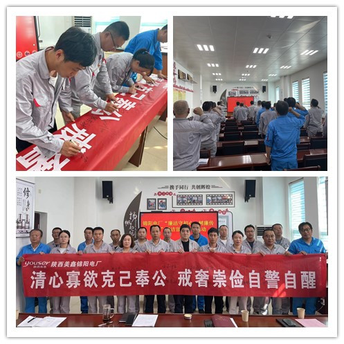為進(jìn)一步筑牢廉潔防線,有效提升廣大職工干部廉潔從業(yè)意識,8月5日下午錦陽電廠開展“廉潔守初心,樹廉傳清風(fēng)”廉潔宣誓活動。錦陽電廠領(lǐng)導(dǎo)班子成員、中層干部、團(tuán)支部書記及黨員代表參加活動。 會前,與會人員集體觀看了《永遠(yuǎn)在路上》廉潔專題教育片,集體學(xué)習(xí)了由中央紀(jì)委國家監(jiān)委發(fā)布的《深化精準(zhǔn)問責(zé)規(guī)范問責(zé) I 強(qiáng)化問責(zé)決定執(zhí)行》。 與會人員在黨總支副書記劉銀玲帶領(lǐng)下重溫錚錚誓言:“堅守初心不忘本,牢記宗旨不走偏;對照黨規(guī)常自檢,時刻警醒正衣冠;欲影正者端其表,欲下廉者先其身;初心如磐擔(dān)使命,堅定信念固根基;歷練黨性惜名節(jié),修身修行修心性;正心修身守清廉,矢志圖強(qiáng)鑄品德;風(fēng)雨不動安如山,賴有砥柱立中流;履職盡責(zé)不越權(quán),恪盡職守善作為;勤快嚴(yán)實(shí)精細(xì)廉,七字作風(fēng)為標(biāo)尺;一心為公是政理,貪權(quán)謀私為禍根;如履薄冰不放縱,如臨深淵不逾規(guī);無私奉獻(xiàn)聚合力,奮楫爭先立標(biāo)桿;防腐倡廉在路上,崇廉尚潔樹清風(fēng);揚(yáng)帆建功新時代,鐵紀(jì)護(hù)航譜新篇”。誓詞鏗鏘,責(zé)任在肩。與會人員紛紛表示將牢固樹立廉潔自律意識,立足崗位,以實(shí)際行動踐行廉潔承諾。隨后大家在“清心寡欲克己奉公,戒奢崇儉自警自醒”橫幅上鄭重簽下自己的名字。 此次廉潔宣誓活動,旨在夯實(shí)黨員領(lǐng)導(dǎo)干部廉潔思想根基,讓黨員同志始終做到心中有黨、心中有責(zé)、心中有戒,大力營造遵規(guī)守紀(jì)、崇廉尚實(shí)、風(fēng)清氣正、干事創(chuàng)業(yè)的良好環(huán)境,以務(wù)實(shí)的作風(fēng)、優(yōu)異的成績迎接黨的二十大勝利召開。  |