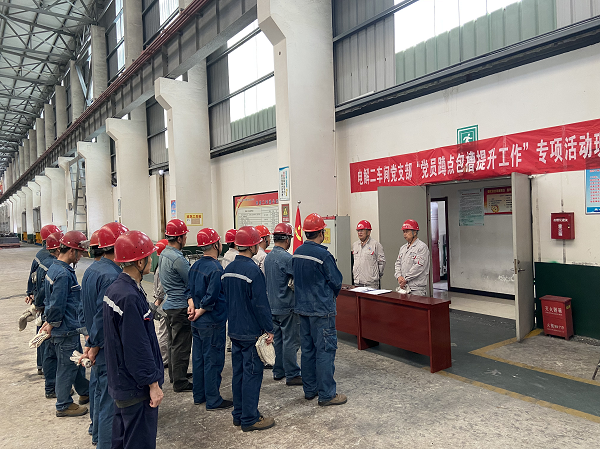近期,鋁鎂合金分公司電解二車間黨支部開展“黨員蹲點包槽提升工作”專項活動,進一步提升電解槽指標,保證職工高溫作業(yè)質(zhì)量,8月9日,活動啟動會在六工區(qū)舉行,支部全體黨員參加。 啟動會上,支部書記靳祥印作動員講話,支部副書記魏崇東對專項活動實施方案作出具體講解,車間副主任陳繼普對責任槽進行了劃分。 分公司黨委副書記李意川出席啟動會,對活動的開展給予肯定和支持,勉勵大家要不斷激發(fā)黨支部戰(zhàn)斗力和黨員先鋒模范作用,力爭打造一支業(yè)務(wù)熟練、作風優(yōu)良、工作規(guī)范的黨員示范隊伍。同時,要求廣大黨員職工要加強對責任槽的日常檢查、維護,在封極換極、收邊整形等工作中抓好細節(jié),在現(xiàn)有基礎(chǔ)上進一步深挖潛力,提升電解槽指標,降低能耗。 現(xiàn)場還簽訂了“黨員蹲點承包槽”承諾書。大家紛紛表示,將以更加飽滿的熱情、昂揚的斗志、扎實的作風,用實際成績?yōu)檐囬g保質(zhì)保量完成全年生產(chǎn)任務(wù)保駕護航。啟動會在全體黨員的鏗鏘誓言中圓滿結(jié)束。  |