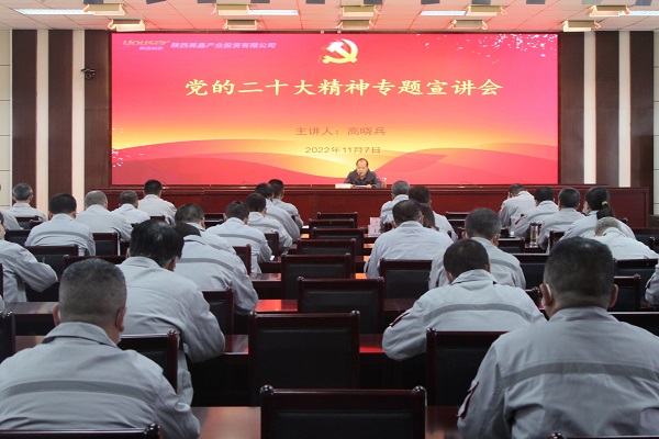 | 為全面深入學(xué)習(xí)領(lǐng)會(huì)黨的二十大精神,引導(dǎo)廣大黨員干部職工把思想和行動(dòng)統(tǒng)一到黨的二十大精神上來,把智慧和力量凝聚到落實(shí)黨的二十大各項(xiàng)目標(biāo)任務(wù)上來。11月7日下午,公司召開黨的二十大精神專題宣講會(huì)。公司黨委書記、董事長高曉兵作專題宣講,公司領(lǐng)導(dǎo)班子成員、監(jiān)事會(huì)主席,各單位、各部門負(fù)責(zé)人,公司部分黨員職工代表參加會(huì)議。會(huì)議由公司黨委副書記李書平主持。 高曉兵圍繞黨的二十大報(bào)告確定的重要思想、重要觀點(diǎn)、重大戰(zhàn)略、重大舉措,從深刻領(lǐng)會(huì)黨的二十大的主題和主要成果,深刻領(lǐng)會(huì)過去5年的工作和新時(shí)代10年的偉大變革,深刻領(lǐng)會(huì)開辟馬克思主義中國化時(shí)代化新境界,深刻領(lǐng)會(huì)以中國式現(xiàn)代化全面推進(jìn)中華民族偉大復(fù)興,深刻領(lǐng)會(huì)對(duì)黨和國家事業(yè)的新部署新要求,深刻領(lǐng)會(huì)加強(qiáng)黨的全面領(lǐng)導(dǎo)、堅(jiān)定不移推進(jìn)全面從嚴(yán)治黨的部署要求等方面進(jìn)行了宣講。 會(huì)議指出,黨的二十大是在全黨全國各族人民邁上全面建設(shè)社會(huì)主義現(xiàn)代化國家新征程、向第二個(gè)百年奮斗目標(biāo)進(jìn)軍的關(guān)鍵時(shí)刻召開的一次十分重要的大會(huì),是一次高舉旗幟、凝聚力量、團(tuán)結(jié)奮進(jìn)的大會(huì)。大會(huì)向黨內(nèi)外、國內(nèi)外鮮明宣示了我們黨在新征程上舉什么旗、走什么路、以什么樣的精神狀態(tài)、朝著什么樣的目標(biāo)繼續(xù)前進(jìn)等重大問題。大會(huì)報(bào)告對(duì)全面建設(shè)社會(huì)主義現(xiàn)代化國家、全面推進(jìn)中華民族偉大復(fù)興進(jìn)行了戰(zhàn)略謀劃,為新時(shí)代新征程黨和國家事業(yè)發(fā)展、實(shí)現(xiàn)第二個(gè)百年奮斗目標(biāo)指明了方向、確立了行動(dòng)指南,是黨團(tuán)結(jié)帶領(lǐng)全國各族人民在新時(shí)代新征程堅(jiān)持和發(fā)展中國特色社會(huì)主義的政治宣言和行動(dòng)綱領(lǐng)。黨的二十大作出的重大決策部署、取得的重大成果,必將對(duì)全面建設(shè)社會(huì)主義現(xiàn)代化國家、全面推進(jìn)中華民族偉大復(fù)興,對(duì)奪取中國特色社會(huì)主義新勝利發(fā)揮十分重要的指導(dǎo)和保證作用。 會(huì)議強(qiáng)調(diào),各基層黨組織要認(rèn)真學(xué)習(xí)領(lǐng)會(huì)黨的二十大精神,結(jié)合各自實(shí)際,抓好落實(shí)。一是要深學(xué)細(xì)悟把握精髓,充分認(rèn)識(shí)學(xué)習(xí)宣傳貫徹黨的二十大精神的重大意義,深入學(xué)習(xí)習(xí)近平總書記在黨的二十屆一中全會(huì)上的重要講話精神。突出重點(diǎn)、抓住關(guān)鍵、整體把握,深刻領(lǐng)悟“兩個(gè)確立”的決定性意義,進(jìn)一步增強(qiáng)“四個(gè)意識(shí)”、堅(jiān)定“四個(gè)自信”、做到“兩個(gè)維護(hù)”。二是要深入開展宣傳宣講,各基層黨組織要?jiǎng)?chuàng)新宣講方式,精心設(shè)計(jì)載體,用好用活各類宣傳陣地,把學(xué)習(xí)黨的二十大精神納入各層級(jí)理論學(xué)習(xí)、黨員教育、干部培訓(xùn),通過“三會(huì)一課”、主題黨日、班組學(xué)習(xí)等多種方式,持續(xù)鞏固學(xué)習(xí)成效。三是要知行合一抓好落實(shí),通過學(xué)習(xí)領(lǐng)悟黨的二十大精神武裝頭腦、指導(dǎo)實(shí)踐、推動(dòng)工作。各基層黨組織要緊盯各項(xiàng)工作重點(diǎn),強(qiáng)學(xué)習(xí)、轉(zhuǎn)作風(fēng),抓安全、穩(wěn)增長,補(bǔ)短板、防風(fēng)險(xiǎn),全力以赴決戰(zhàn)決勝2022年,為明年各項(xiàng)工作開好局、起好步奠定基礎(chǔ)。 |
