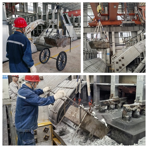 近日,一款簡便實用具有可推運(yùn)可吊裝雙重功能的電解槽槽間進(jìn)料小推車在鋁鎂合金分公司電解一車間三工區(qū)投入使用,有效提高了初封極作業(yè)效率。 據(jù)了解,電解車間槽與槽之間間距狹窄,此前使用的小推車受寬度和材質(zhì)限制,在封極上料過程中無法直接推入作業(yè)區(qū)域,只能人工用鐵锨端料進(jìn)入槽間上料。針對此問題電解一車間技術(shù)革新小組在多方征求職工意見的基礎(chǔ)上,經(jīng)過反復(fù)試驗,最終成功制作出一款以不銹鋼鋼板為制作原材料的“防磁場多功能槽間進(jìn)料小推車”并投入使用。該小推車在充分考量初封極所需料量和電解槽磁場影響的基礎(chǔ)上,合理設(shè)置尺寸,保留基礎(chǔ)功能并在箱體側(cè)部加焊了4個吊環(huán)方便天車吊運(yùn)。作業(yè)時,只需將小推車裝滿封極料后推至需要初封陽極電解槽出鋁端口,然后用專用的防磁吊鉤將小推車吊運(yùn)至初封極工作面,摘掉其中兩個掛鉤后將小推車中料塊精準(zhǔn)翻置到陽極表面并用鐵锨簡單平整就可完成初封極工作。 今后,電解一車間技術(shù)革新小組將在創(chuàng)新革新道路上持續(xù)發(fā)力,以創(chuàng)新思維為實現(xiàn)安全工作、高效作業(yè)目標(biāo)提供堅強(qiáng)保障。  |