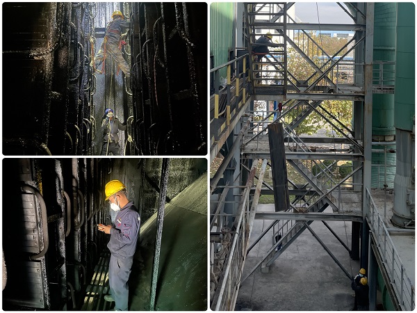 隨著生產(chǎn)工作持續(xù)進行,10月中下旬,陽極分公司焙燒車間2#煙氣凈化系統(tǒng)電捕焦油器陽極板已達到使用更換周期,為防止發(fā)生極板脫落、電暈閉塞等設(shè)備隱患,經(jīng)分公司同意,車間決定對2#系統(tǒng)電捕焦油器陽極板進行集中更換。 由于本次極板更換時間緊、任務(wù)重,分公司決定由焙燒車間和外包單位共同完成此項工作。車間結(jié)合生產(chǎn)實際,制定詳實的工作方案和應(yīng)急預(yù)案,協(xié)助辦理受限空間工作票,定時定點做好通風檢測等安全保障措施,安排專人認真進行現(xiàn)場監(jiān)護管理和檢查清理,確保極板更換作業(yè)安全高效完成。在此次更換作業(yè)中,焙燒車間總結(jié)以往工作經(jīng)驗,與外包單位協(xié)同配合,采用定、動滑輪組調(diào)運安裝陽極板,大幅提高了安全性能,減輕勞動強度,有效提升了工作效率。經(jīng)過二十余天緊張忙碌工作,近期,2#系統(tǒng)電捕焦油器陽極板全部更換完成,經(jīng)調(diào)試運行一切狀況良好。 此次極板更換工作,徹底消除了因極板腐蝕損壞、捕集吸附能力減弱所引起的系統(tǒng)電流降低、電暈閉塞、極板脫落等潛在安全隱患,保證了車間環(huán)保排放指標正常平穩(wěn),也為車間后期自主更換陽極板作業(yè)積累了寶貴經(jīng)驗。  |