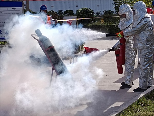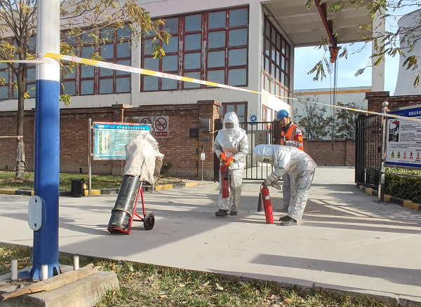 為深刻吸取山西呂梁永聚煤礦火災事故,進一步提升電廠上下應急聯動能力,11月28日下午,錦陽電廠在儲氫站外開展儲氫站氫瓶泄漏著火事故應急演練。電廠管理人員,各部門、項目部安全員和部分職工在現場進行觀摩。 儲氫站屬于電廠重點防火管轄區(qū)域,氫瓶泄漏著火易引發(fā)氫氣爆炸事故。演練模擬巡檢人員在儲氫站巡檢時檢測氫氣超標,迅速跑到儲氫站外匯報值長并果斷采取通風措施。值長立即聯系檢修部汽機班進行緊急處理,同時匯報安環(huán)部及電廠領導。汽機班長帶人迅速趕到儲氫站查看,發(fā)現有一氫瓶泄漏,隨即聯系運行人員對儲氫站泄漏點做安全隔離措施;警戒組立即在周邊拉起警戒線,禁止無關人員進入現場,避免造成二次傷害;參與搶險人員做好個人防護,快速用推車將泄漏瓶移到儲氫站外,用滅火器對著火點進行滅火,并對泄漏氫瓶正確規(guī)范泄壓。火災撲滅后,經運行人員對儲氫站內氫氣監(jiān)測結果顯示正常后,演練圓滿結束。 演練結束后,電廠副經理郭軍營進行點評,肯定了本次演練效果并提出要求,要以此次演練活動為契機,進一步加強安全管理,全面提升員工應急處置能力,確保電廠經濟安全平穩(wěn)運行。 |
