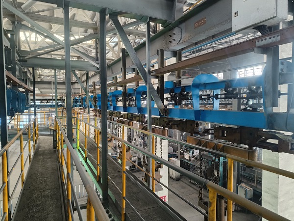 陽極分公司組裝車間懸鏈輸送機(jī)是輸送殘極、鋁導(dǎo)桿和成品陽極的主要設(shè)備,隨著長時間負(fù)載運(yùn)行,彎軌、驅(qū)動站出口軌道、分流編組裝置、卸極下壓裝置等機(jī)構(gòu)磨損變形狀況明顯,懸鏈卡頓急,F(xiàn)象時有發(fā)生,給車間設(shè)備安全和生產(chǎn)連續(xù)作業(yè)帶來較大影響。 針對上述情況,分公司高度重視,成立維保工作專班,相關(guān)職能部門、組裝車間及外委施工單位協(xié)同開展維保工作。維保期間,組織召開項(xiàng)目協(xié)調(diào)會,分析研判懸鏈輸送機(jī)機(jī)構(gòu)磨損變形情況,在保證安全、穩(wěn)定生產(chǎn)的前提下制定維保施工方案及應(yīng)急預(yù)案。實(shí)施過程中,各單位明確分工、各司其職,生產(chǎn)管理部負(fù)責(zé)生產(chǎn)協(xié)調(diào)、保證產(chǎn)量任務(wù)順利完成,設(shè)備管理部協(xié)調(diào)好設(shè)備材料的及時到場,安全環(huán)保部做好現(xiàn)場安全監(jiān)管,組裝車間以屬地管理為原則做好過程把控和維保質(zhì)量監(jiān)控,外委單位按方案計劃對懸鏈軌道、制動器等設(shè)備進(jìn)行修復(fù)更換,歷時15天緊張忙碌的拆除、修整、裝配及調(diào)試,按計劃完成了組裝車間懸鏈輸送機(jī)維保工作,經(jīng)調(diào)試,運(yùn)行狀況平穩(wěn)可靠。 此次懸鏈輸送機(jī)維保工作,進(jìn)一步提升了設(shè)備安全使用性能,消除了生產(chǎn)運(yùn)行中的安全隱患,保證了生產(chǎn)連續(xù)性,為滿足鋁鎂合金用極需求提供了可靠保障。  |