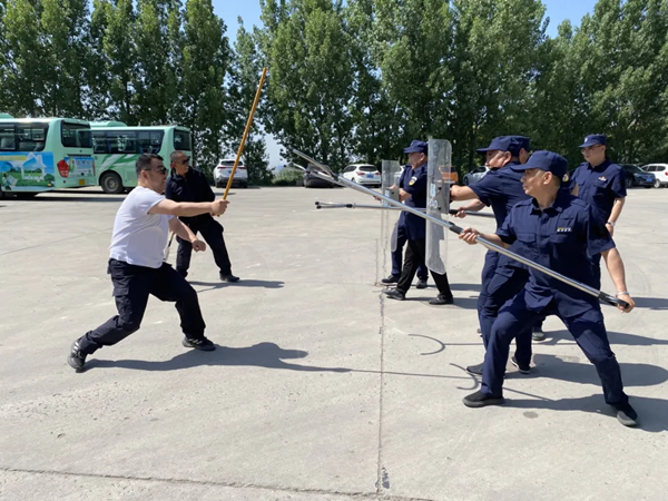 為進一步提升公司安保人員的整體工作面貌及個人業(yè)務素質,銅鋁留守處安全環(huán)保治安管理部(以下簡稱“安保部”)于5月13日至15日分批組織全體安保人員進行集訓。集訓內容包括《安全保衛(wèi)制度》教育培訓、隊列實操訓練以及應急實戰(zhàn)演練。 安保部副主任來曙輝組織大家進行安保理論知識的集中學習,并在訓練中指揮安保人員模擬突發(fā)情況進行實戰(zhàn)演練,提高安保人員的應急反應能力和處理突發(fā)事件的能力。安保部錦陽電廠門衛(wèi)班班長谷浩對大家進行了隊列訓練,使全體隊員達到了高度統一的隊列隊姿,規(guī)范了安保人員的儀容儀表和行為舉止,提高安保人員的整體形象。 經過三天的集訓,進一步增強了全體安保人員的綜合素質和突發(fā)事件應急處置能力,營造出了積極上進的工作態(tài)度和精神風貌,有力推動了公司安保工作再上新臺階。  |