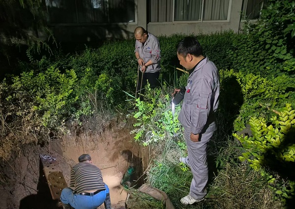 5月23日20時30分,錦陽電廠化學(xué)運行值班員在監(jiān)盤時發(fā)現(xiàn)消防穩(wěn)壓泵啟停頻繁、消防水液位急速下降,立即將此異常情況逐級上報。消防穩(wěn)壓泵是電廠消防供水的保障,如不能正常運行,消防管道水源就難以保障足夠的水壓。發(fā)電部迅速組織人員趕赴現(xiàn)場對各排污井進行逐一排查,21點30分,經(jīng)多方排摸查漏,在宿舍樓后草坪處發(fā)現(xiàn)大量積水,確定為消防水管網(wǎng)管道漏水。 為防止消防水泄漏繼續(xù)擴大,造成廠區(qū)消防系統(tǒng)失效,發(fā)電部聯(lián)合檢修部立即開展搶修處理工作。檢修人員分段開挖,確認漏水點。發(fā)電部運行人員關(guān)閉消防水管網(wǎng)供水閥門,打開泄壓門,排空管道存水,架設(shè)水泵抽水。由于漏點較多,溢出水量較大,消防水管網(wǎng)管道周圍已淤成一片泥坑,為縮短搶修時間,運行人員使用鐵鍬、鎬頭等工具,對管道周邊進行不斷重復(fù)抽水、清漿工作,檢修人員委身在泥地里,蜷縮身體進行焊接作業(yè)。經(jīng)過連續(xù)10個小時奮戰(zhàn),終于在5月24日6時30分完成了搶修任務(wù),消防管道恢復(fù)正常使用。后續(xù),錦陽電廠將進一步強化隱患排查治理工作,有序推動各項工作穩(wěn)步向前。  |