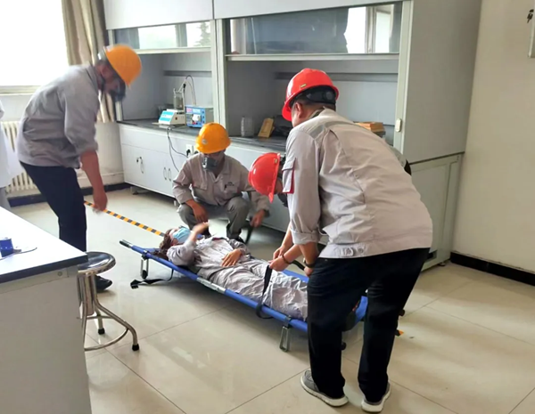 為切實(shí)提升;沸孤┦鹿蕬(yīng)急處置水平,根據(jù)《質(zhì)檢計(jì)量中心2024年安全生產(chǎn)月活動(dòng)方案》,6月18日,質(zhì)檢計(jì)量中心在檢驗(yàn)二室開展了甲苯泄露事故應(yīng)急救援演練。 事故演練模擬檢驗(yàn)二室在準(zhǔn)備甲苯實(shí)驗(yàn)前甲苯發(fā)生泄漏,導(dǎo)致一名化驗(yàn)員中毒暈倒。14時(shí)30分,演練開始,當(dāng)檢驗(yàn)二室安全員在巡檢過程中發(fā)現(xiàn)一名化驗(yàn)員不慎暈倒,同時(shí)在地面發(fā)現(xiàn)了碎裂甲苯瓶和泄露液體,隨即立即向檢驗(yàn)室專責(zé)報(bào)告。檢驗(yàn)室專責(zé)迅速向中心應(yīng)急值班人員進(jìn)行匯報(bào)并采取相應(yīng)措施,啟動(dòng)甲苯泄漏應(yīng)急預(yù)案,各應(yīng)急救援小組立即開展救援。安全警戒組人員現(xiàn)場(chǎng)警戒,禁止無關(guān)人員進(jìn)入事故現(xiàn)場(chǎng);應(yīng)急救援組佩戴防毒面具進(jìn)入現(xiàn)場(chǎng),用擔(dān)架抬起中毒人員,向一樓通風(fēng)處轉(zhuǎn)移;醫(yī)療救護(hù)組對(duì)傷員進(jìn)行心肺復(fù)蘇并立即撥打120,報(bào)告受傷人員、傷員所在地點(diǎn)及聯(lián)系電話,隨后送往醫(yī)院救治;事故搶險(xiǎn)組穿戴好防毒面具、防護(hù)服進(jìn)入現(xiàn)場(chǎng)進(jìn)行危險(xiǎn)廢物清理。隨后經(jīng)安全員仔細(xì)檢查確認(rèn)無泄漏后,請(qǐng)求恢復(fù)正常生產(chǎn)。15時(shí)05分,總指揮宣布演練結(jié)束。中心相關(guān)負(fù)責(zé)人對(duì)此次演練進(jìn)行了點(diǎn)評(píng),對(duì)演練過程存在的不足提出具體整改要求。 本次演練,增強(qiáng)了中心職工的安全意識(shí)與自護(hù)自救技能,為中心安全生產(chǎn)工作提供有力保障。  |