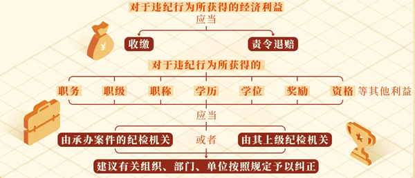 《中國(guó)共產(chǎn)黨紀(jì)律處分條例》對(duì)于違紀(jì)行為所獲利益如何處理作出了規(guī)定。主要分為兩種情況—— 對(duì)于違紀(jì)行為所獲得的經(jīng)濟(jì)利益,應(yīng)當(dāng)收繳或者責(zé)令退賠。對(duì)于主動(dòng)上交的違紀(jì)所得和經(jīng)濟(jì)損失賠償,應(yīng)當(dāng)予以接收,并按照規(guī)定收繳或者返還有關(guān)單位、個(gè)人。 依照《中國(guó)共產(chǎn)黨紀(jì)律處分條例》《中華人民共和國(guó)公職人員政務(wù)處分法》及相關(guān)指導(dǎo)性案例,在追究黨紀(jì)責(zé)任時(shí),處置涉案財(cái)物的主要方式為“收繳”和“責(zé)令退賠”;在追究監(jiān)察責(zé)任時(shí),處置涉案財(cái)物的主要方式為“沒(méi)收”“追繳”和“責(zé)令退賠”。其中,追究黨紀(jì)責(zé)任時(shí)對(duì)違紀(jì)所得予以“收繳”,相當(dāng)于追究監(jiān)察責(zé)任時(shí)對(duì)違法所得予以“沒(méi)收”和“追繳”。 “收繳”通常針對(duì)的是實(shí)施違紀(jì)違法行為所獲得的財(cái)物及其孳息收益,“責(zé)令退賠”通常針對(duì)的是違反規(guī)定揮霍浪費(fèi)國(guó)有資產(chǎn),如公款吃喝、公款旅游以及違反規(guī)定亂罰款、亂收費(fèi)獲得的財(cái)物等,責(zé)令被審查調(diào)查人將違紀(jì)違法所得的財(cái)物予以歸還,財(cái)物已經(jīng)被消耗、毀損的,應(yīng)當(dāng)用與之價(jià)值相當(dāng)?shù)呢?cái)物予以賠償,責(zé)令退賠的財(cái)物直接退賠原所有人或原持有人,無(wú)法退賠的上繳國(guó)庫(kù)。 對(duì)于違紀(jì)行為所獲得的職務(wù)、職級(jí)、職稱、學(xué)歷、學(xué)位、獎(jiǎng)勵(lì)、資格等其他利益,應(yīng)當(dāng)由承辦案件的紀(jì)檢機(jī)關(guān)或者由其上級(jí)紀(jì)檢機(jī)關(guān)建議有關(guān)組織、部門(mén)、單位按照規(guī)定予以糾正。 這里的“有關(guān)組織、部門(mén)、單位”,主要是指對(duì)違紀(jì)行為所獲得的職務(wù)、職級(jí)、職稱、學(xué)歷、學(xué)位、獎(jiǎng)勵(lì)、資格等其他利益有權(quán)予以糾正的組織、部門(mén)、單位。 同時(shí),結(jié)合《條例》第三十七條、第三十八條規(guī)定,對(duì)違紀(jì)后下落不明的黨員,黨組織作出處分決定前死亡的黨員,或者死亡之后發(fā)現(xiàn)曾有嚴(yán)重違紀(jì)行為的黨員,經(jīng)調(diào)查確屬其實(shí)施違紀(jì)行為獲得的利益,也應(yīng)當(dāng)依照上述規(guī)定處理。 |