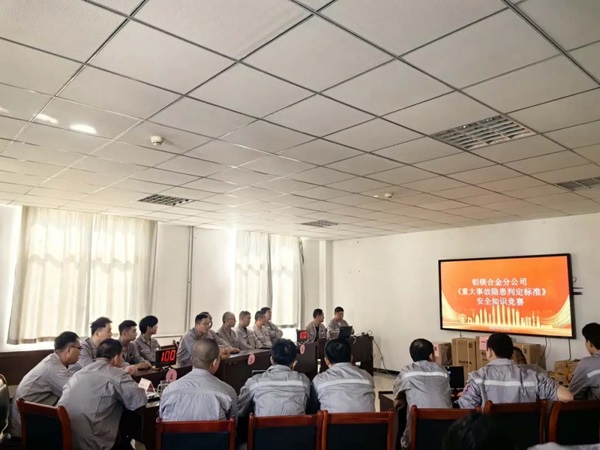 為深入貫徹落實習(xí)近平總書記關(guān)于安全生產(chǎn)重要論述,持續(xù)加強對《重大事故隱患判定標準》的學(xué)習(xí)宣貫,6月28日,鋁鎂合金分公司組織開展《重大事故隱患判定標準》安全知識競賽。來自電解車間、鑄造車間的6支參賽隊伍參加比賽。 本次競賽分為個人必答題、小組必答題、搶答題、對戰(zhàn)題、附加題、觀眾互動等環(huán)節(jié)。比賽現(xiàn)場各組選手分分必爭、快速反應(yīng),觀眾互動積極踴躍,展現(xiàn)出良好的精神風(fēng)貌和濃厚的比賽氛圍。經(jīng)過激烈角逐,由來自電解二車間的3號代表隊獲得一等獎,隊員閆旭坤獲得突出個人獎,本次活動圓滿落幕。 分公司將以此次活動為契機,激勵廣大職工持續(xù)學(xué)習(xí)貫徹落實《重大事故隱患判定標準》,加強隱患排查治理,走好鋁冶煉安全發(fā)展道路。  |