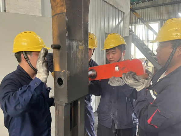 為確保陽極自產(chǎn)塊及代焙塊的生產(chǎn)任務順利完成,近期,陽極分公司焙燒車間對1#多功能天車夾具夾釘進行了更換,以便增大夾具與炭塊間的摩擦阻力,保障設備生產(chǎn)安全。 車間合理安排調(diào)配,討論制定了詳細的方案,利用生產(chǎn)間隙集中力量進行更換。由車間領導現(xiàn)場統(tǒng)籌安排,設備專責協(xié)調(diào)備件、全程跟進,安全員現(xiàn)場安全檢查、責任監(jiān)護,維修班具體負責拆卸、安裝。由于夾具夾釘屬于配合件,作業(yè)人員既要保證銷釘與銷孔的配合度,還要確保表面光潔度不被損壞。更換過程中,檢修人員精細作業(yè),合力對重達百斤的夾釘進行拆卸、搬運、安裝、焊接、固定,在大家的通力配合下,順利完成了1#多功能天車4個夾具夾釘?shù)母鼡Q工作,經(jīng)調(diào)試運行正常,目前已正式投入生產(chǎn)。 此次夾具夾釘更換,消除了設備安全隱患,避免了炭塊裝夾過程中滑脫風險,有效滿足了自產(chǎn)陽極塊及代焙塊裝出爐作業(yè)需求,為分公司順利完成年度降本增效任務提供了有力支撐。  |