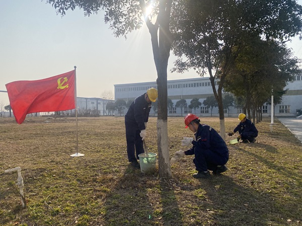 冬日來臨,天氣漸冷,為做好車間周邊樹木防護(hù)工作,避免凍傷和病蟲侵害,12與19日,陽(yáng)極分公司焙燒車間黨支部組織黨員職工開展“樹木防護(hù)著‘新裝’,抗寒防蟲保生長(zhǎng)”主題黨日活動(dòng)。 為保證樹木防護(hù)工作有效、到位,黨支部提前查閱書籍資料,學(xué)習(xí)防凍技巧和方法,為活動(dòng)開展備足功課。19日中午,黨支部利用工余時(shí)間組織黨員職工開展了此次活動(dòng),活動(dòng)中,大家分工明確,相互配合,有的調(diào)配涂料、有的負(fù)責(zé)搬運(yùn)、有的認(rèn)真細(xì)致涂抹,在粉刷涂料時(shí),黨員職工還相互討論交流心得,分享經(jīng)驗(yàn)做法,不但提高了工作效率,還增長(zhǎng)了林木防護(hù)知識(shí)。經(jīng)過大家的辛勤勞作,廠房周邊40余棵樹木換上了白色的“新裝”,整齊劃一。 通過此次主題黨日活動(dòng),保護(hù)了廠區(qū)綠化,美化了工作環(huán)境,同時(shí)也增強(qiáng)了黨組織凝聚力,激發(fā)了黨員職工的工作熱情。接下來,車間黨支部將繼續(xù)發(fā)揮黨建引領(lǐng)服務(wù)職能,帶領(lǐng)黨員職工攻堅(jiān)克難、努力工作,為公司高質(zhì)量發(fā)展做出更大貢獻(xiàn)。  |