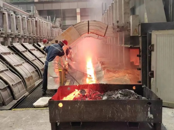 在鋁鎂合金分公司電解一車間的廠房里,比酷暑天氣更熾熱的,是黨員突擊隊帶領(lǐng)職工戰(zhàn)高溫、保生產(chǎn)的決心。面對極端高溫的“烤”驗,大家咬牙攻堅,僅用15天就高效完成7臺停槽、4臺裝爐及焙燒啟動任務(wù),刷新了單月大修槽歷史紀錄。 “啟動溫度不能降,生產(chǎn)進度不能拖!边@是電解一車間黨員突擊隊立下的誓言。車間內(nèi)電解槽周邊散發(fā)的熱量讓環(huán)境溫度比室外還要高出50余度,在熱浪翻滾的車間里,即使站著不動汗水也能瞬間浸透衣服。但為了確保啟動任務(wù)如期完成,大家身穿厚重隔熱服,一絲不茍地進行分流片安裝、母線連接等關(guān)鍵操作。 “黨員就該沖在最前面!”,在電解槽旁輪流作業(yè)時,李惠仁抹了把臉上的汗,聲音因高溫而變得有些沙啞。為了加快進度,他帶領(lǐng)突擊隊成員調(diào)整作息,避開正午最高溫時段,在下午氣溫稍降后主動加班開展作業(yè)。打撈碳渣是啟動工作中最艱苦的環(huán)節(jié)之一,高溫下的電解質(zhì)溶液泛著橘紅色的光暈,熱浪直撲臉頰,工區(qū)長暢紅星總是第一個拿起爐鏟開始打撈,“我經(jīng)驗多,讓我來”,在他的帶動下黨員職工們輪番上陣,沒有一個人喊累叫苦。 車間黨支部也時刻關(guān)心著每一名職工,防暑降溫物資及時送到崗位,綠豆湯、藿香正氣水源源不斷供應(yīng),休息室里的空調(diào)始終保持適宜溫度!敖M織的關(guān)懷就是我們的動力!鼻嗄曷毠ぺw睿喆喝著清涼的綠豆湯說到,“看著師傅們帶頭干,我們年輕人更不能掉隊”。 夕陽映照下,電解車間依舊有序而又忙碌,那濕透的工裝、黝黑的臉龐和堅毅的身影,正是這個炎夏里電解人擔當與奉獻的無聲宣言。 |