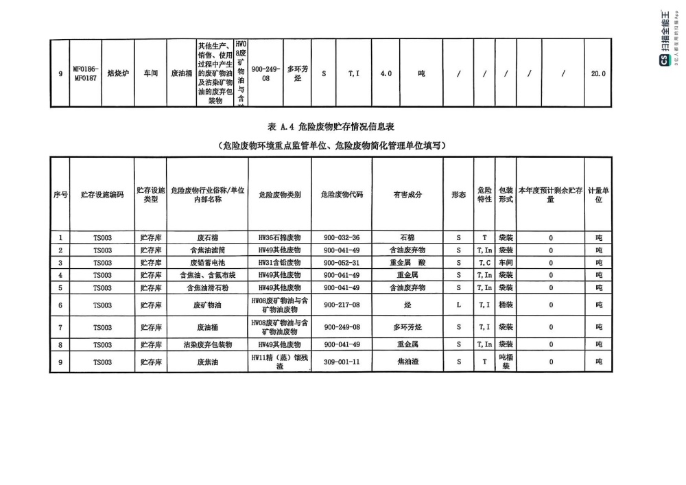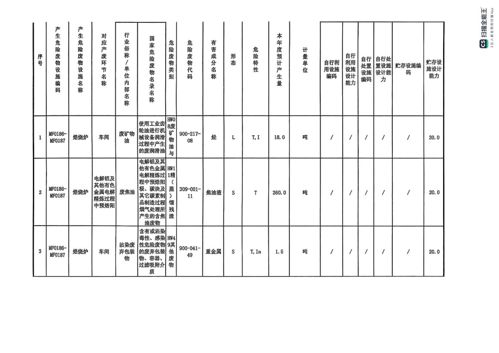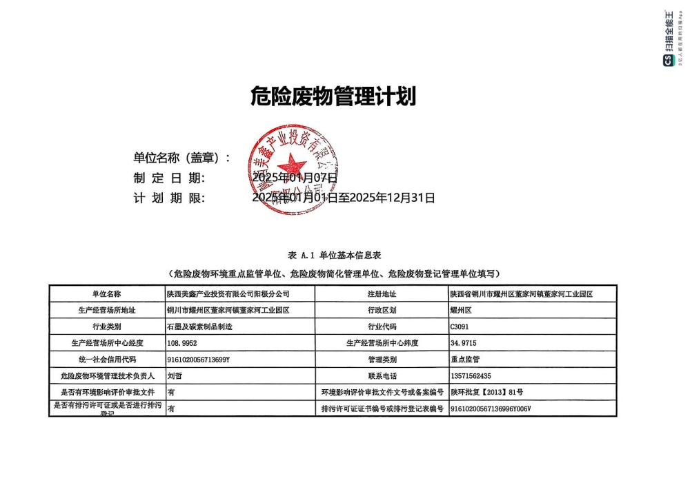 2025年危險廢物管理計劃(陽極分公司)